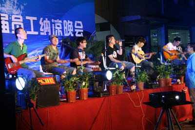 18:30分,晚會節(jié)目正式開始,首先在晨曦樂隊激情飛揚的搖滾歌曲聲中拉開了晚會的序幕。晚會節(jié)目有獨唱、小合唱、舞蹈等等,演員們的精彩表演,博得了員工們陣陣掌聲和喝彩。特別是生產(chǎn)部門女職工排練的舞蹈,動感十足,展示了女員工的多姿多彩的精神風貌。常務副總經(jīng)理王正軍的一曲豪邁的《紅旗飄飄》,抒發(fā)了荏原博泵員工的愛國情懷;北京事務所的王信東部長帶來了抒情歌曲《別問》;王虹權、袁磊、趙喜鵬、周新菊、肖旭、竇群、蔣祺、張雷雷、徐道義、董旭光等員工先后表演了自己準備的節(jié)目;職工子女表演的拉丁舞更是把晚會的氣氛推向高潮。