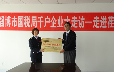 會上,舉行了授牌儀式,志賀進總經理從婁局長手中接過了淄博市國稅局頒發(fā)的 “依法納稅 強國惠民” 的牌匾。