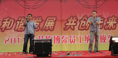 舞蹈《開門紅》寄托著荏原博泵員工對公司發(fā)展前景的美好期盼,展示了公司女職工的風采。20多名復員軍人用一首《咱當兵的人》抒發(fā)了他們保家衛(wèi)國、貢獻企業(yè)的豪情與壯志;研發(fā)部、技術(shù)部員工帶來的歌曲《跳起來》,展示了年輕人的青春與活力;質(zhì)量保證部員工在部長岳東海帶領(lǐng)下,演唱了歌曲《相親相愛一家人》,演繹著荏原博泵大家庭的親情、友情。友情樂隊帶來的動感十足的歌曲,更是將晚會的氣氛烘托到高潮。