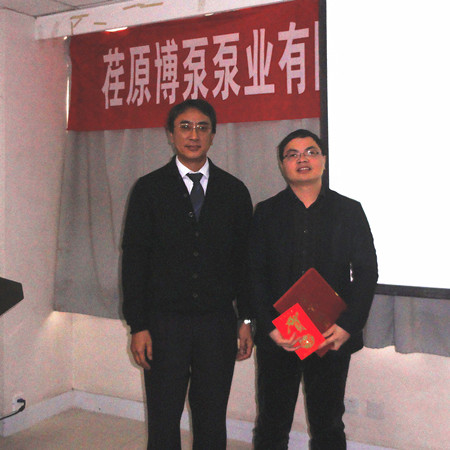 最后,對2012年度優(yōu)秀業(yè)務員――高文旭、優(yōu)秀技術工程師――夏紅軍進行了表彰,總經理志賀進先生親自為他們頒發(fā)了證書及獎金。