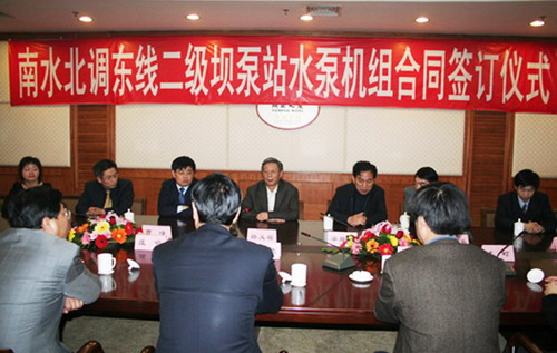 新聞中心 3月12日,南水北調(diào)東線一期工程二級壩泵站簽字儀式在山東省濟(jì)南頤正大廈隆重舉行;山東省水利廳領(lǐng)導(dǎo)、淄博市領(lǐng)導(dǎo)及荏原博泵李正民副總帶隊(duì)參加了簽字儀式。荏原博泵在南水北調(diào)主線泵站中標(biāo),標(biāo)志著我公司大型泵的制造將有新的突破。